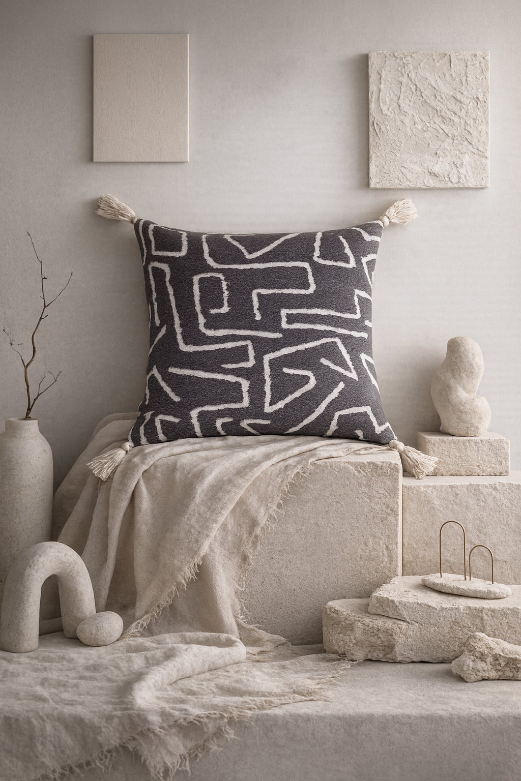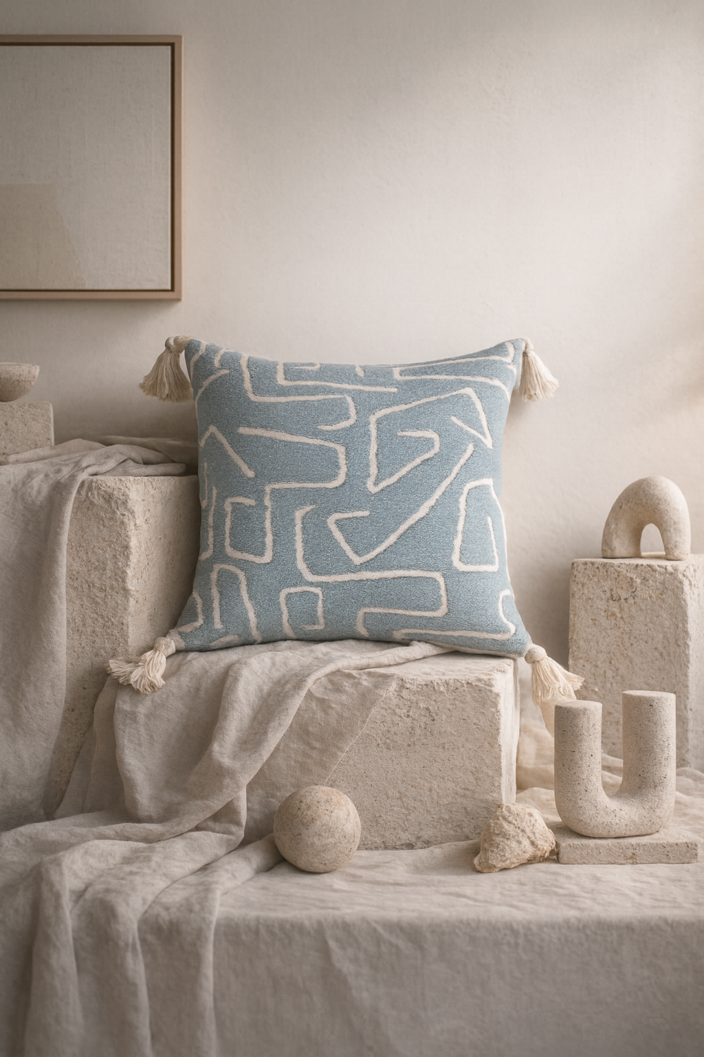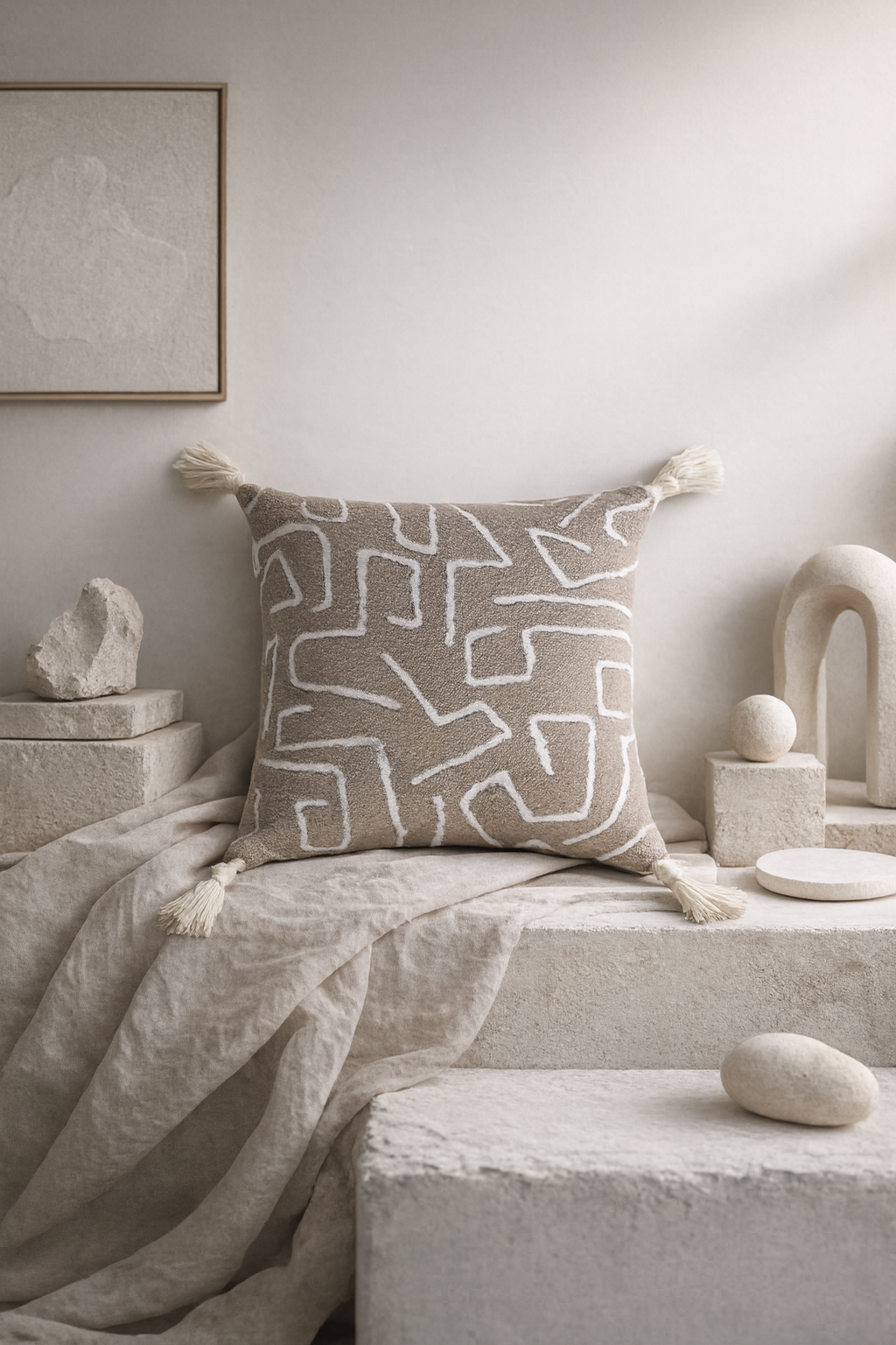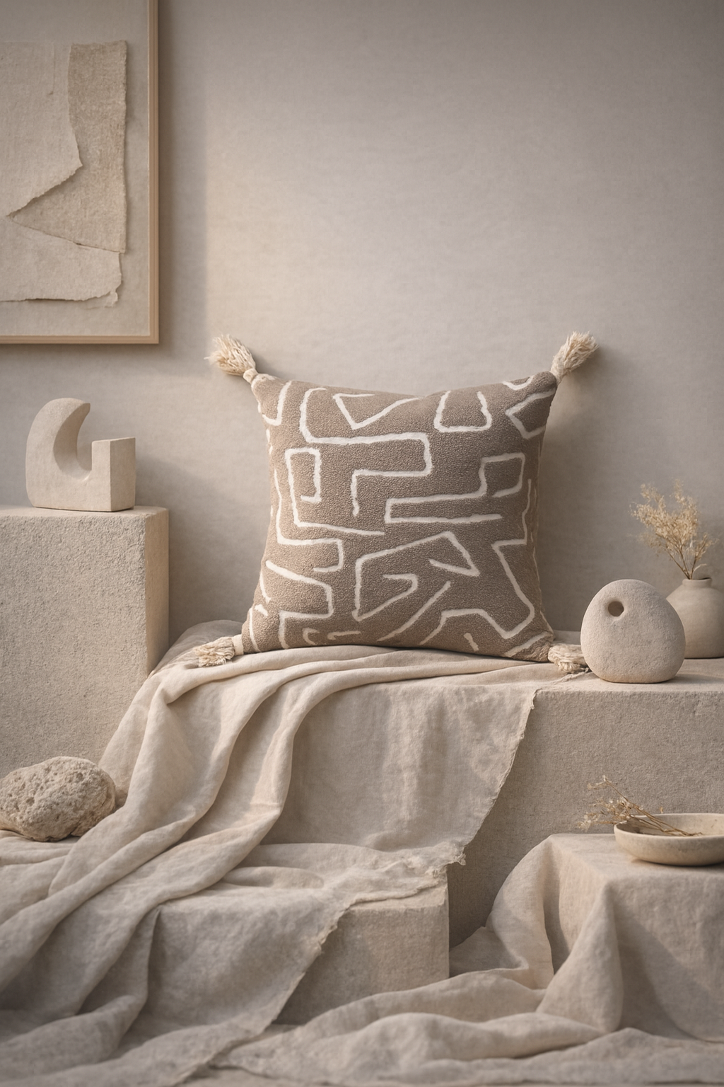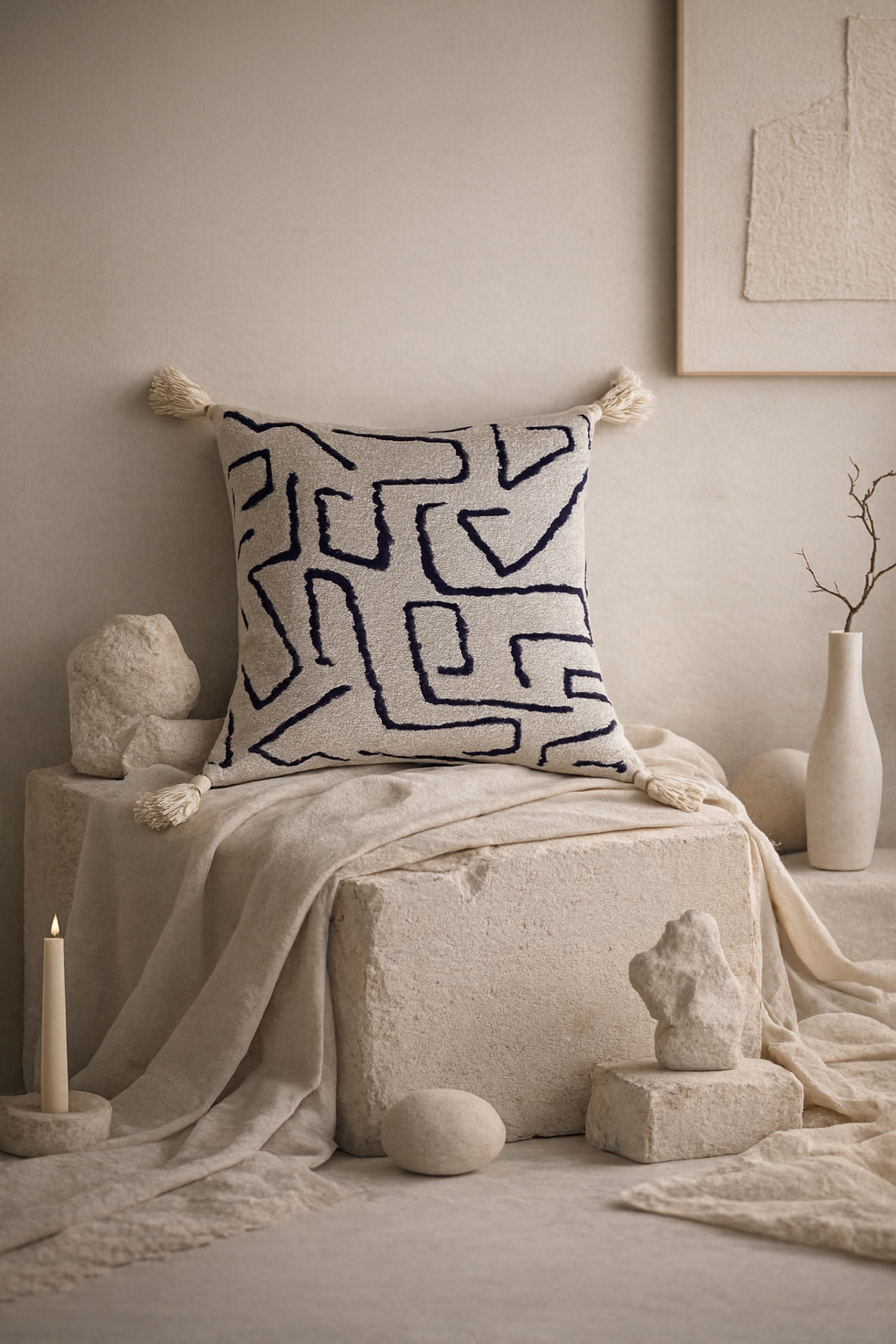 Tufted in soft cotton, each surface carries a tribal rhythm that isn’t decorative, but instinctive. The kind of pattern the body understands before the mind does.