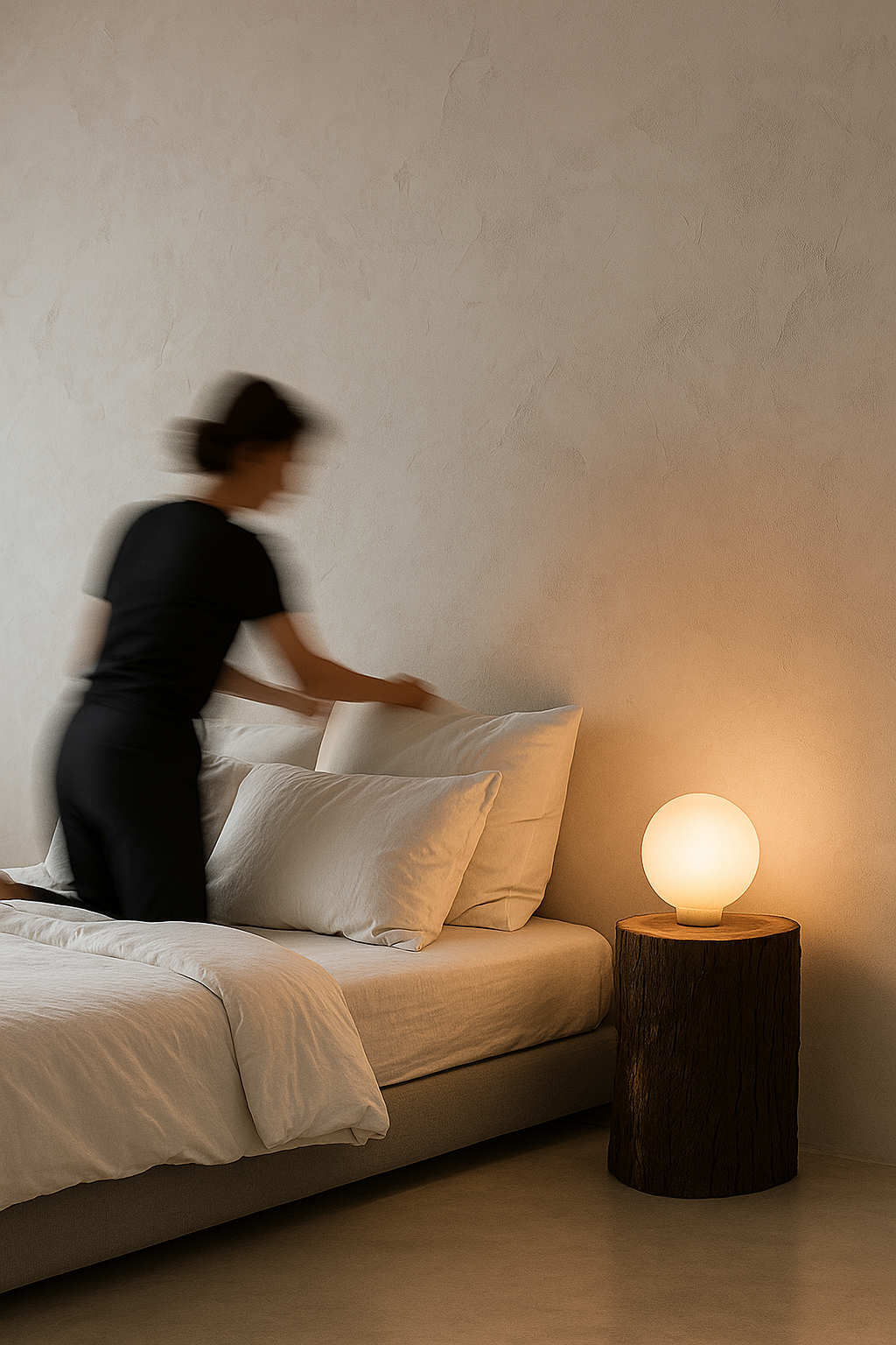 A bedside table that reminds you to stay real in a world that keeps rushing.